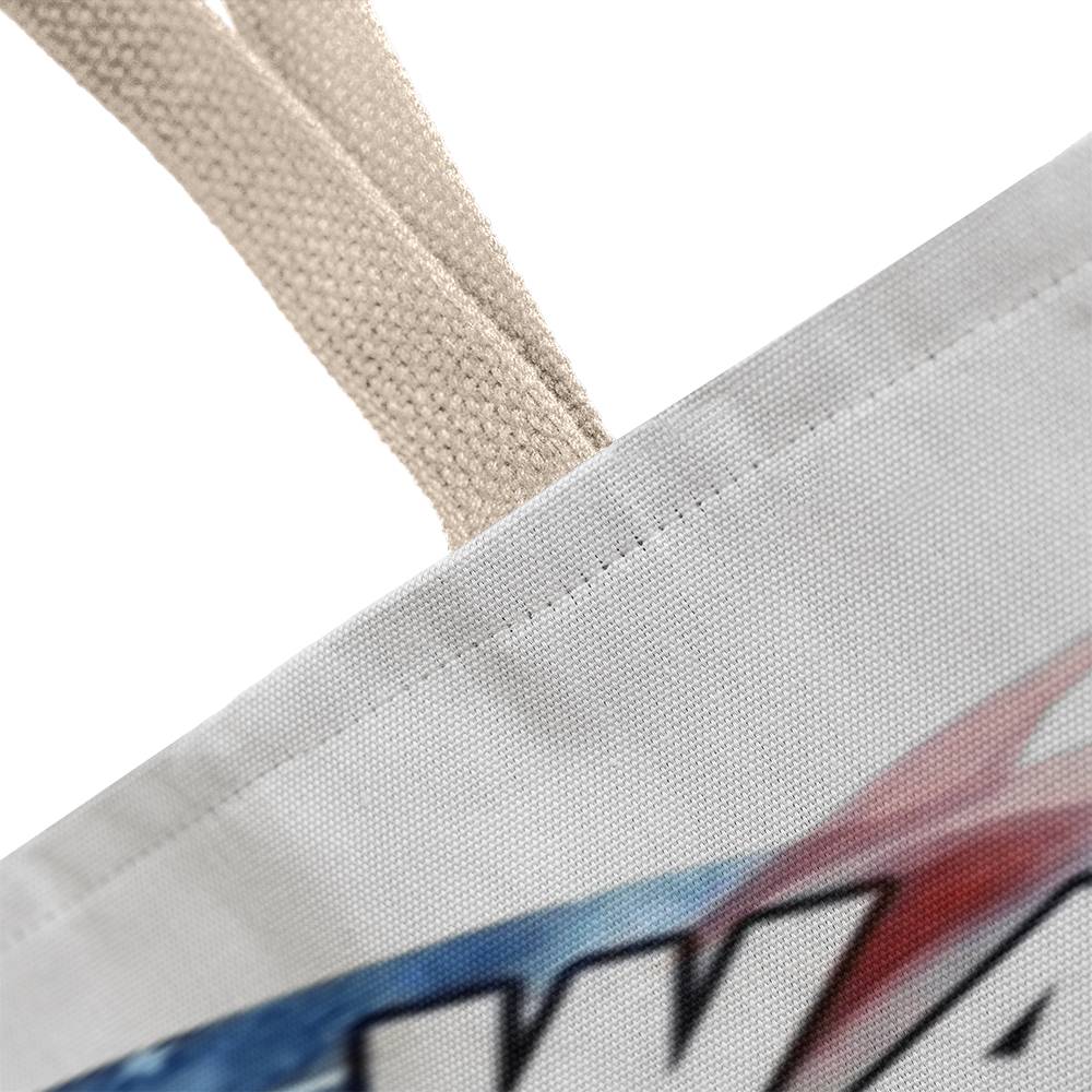 Your tote bag will be custom made upon order. You can expect a professionally printed design on both sides, making this a piece that can be treasured for a lifetime. Further your customization by choosing between 5 handle colors.