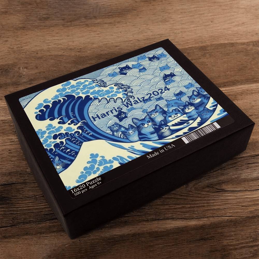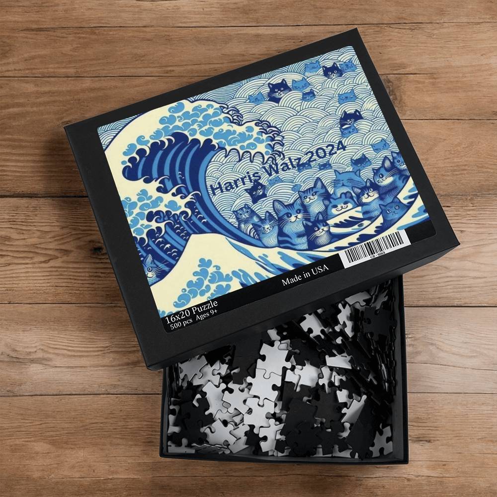 Harris Walz 2024 Election Cat Blue Wave 16" x 20" Puzzle