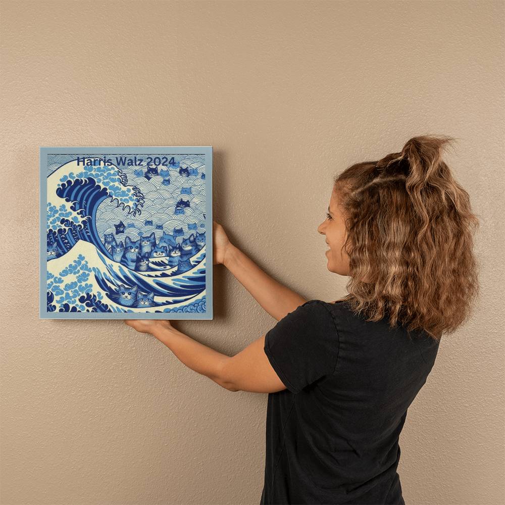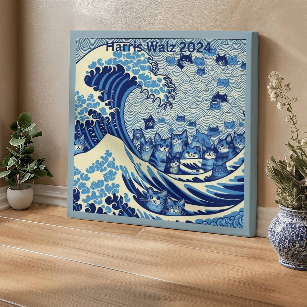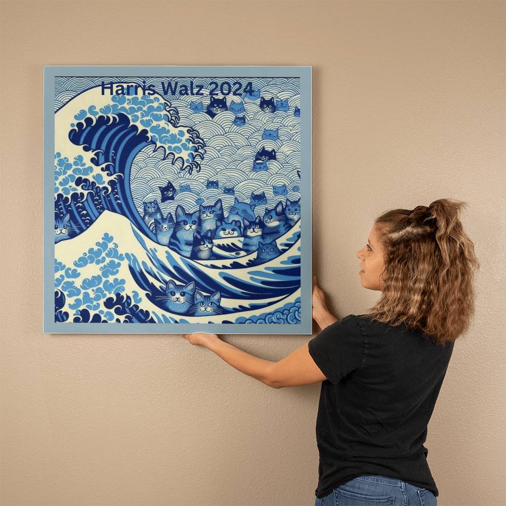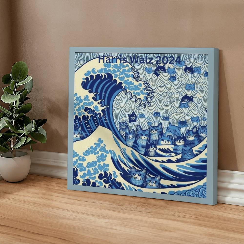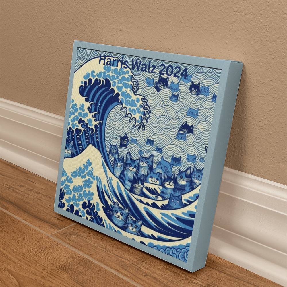 Harris Walz 2024 Election Cat Blue Wave Gallery Wrapped Canvas