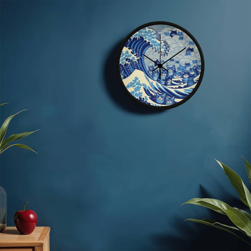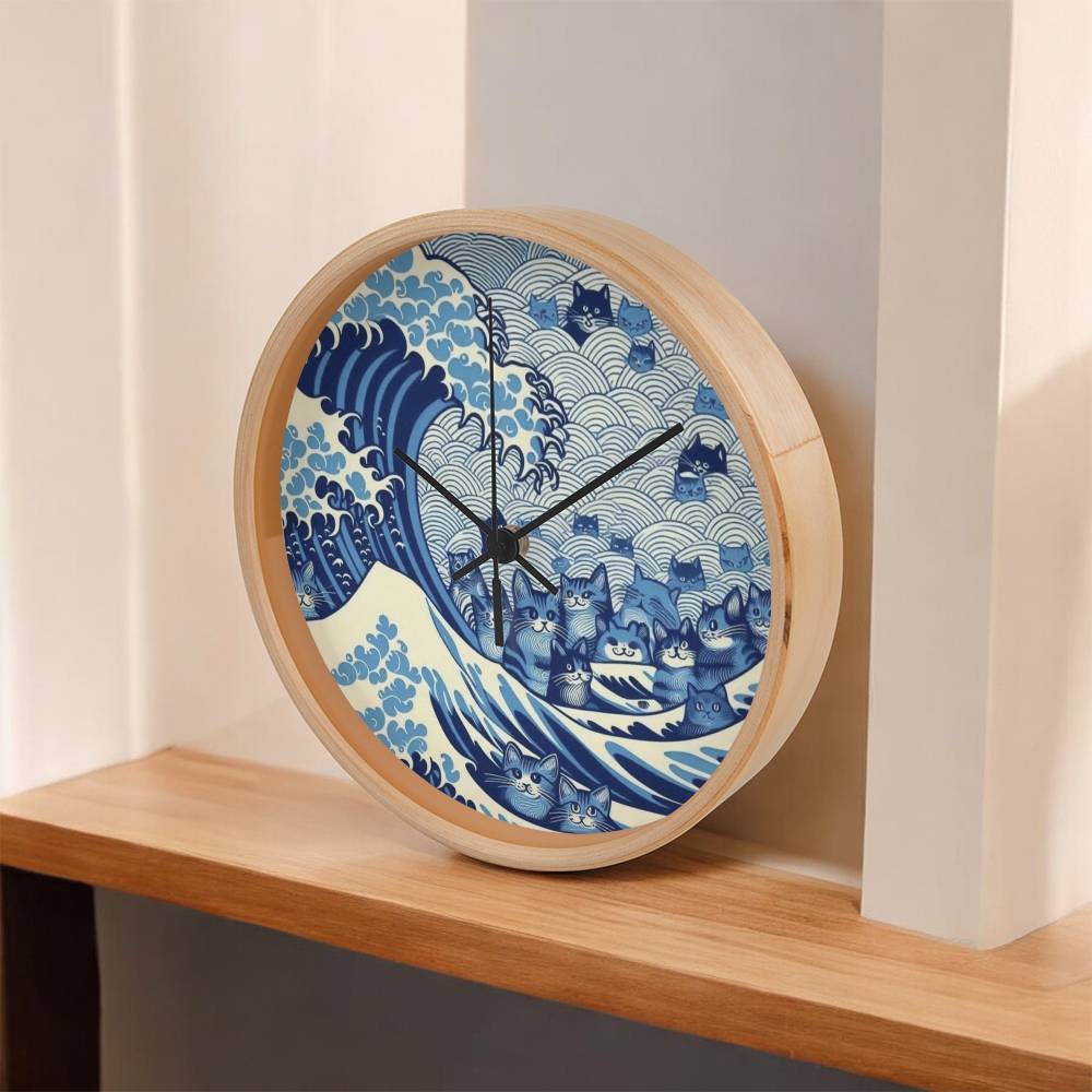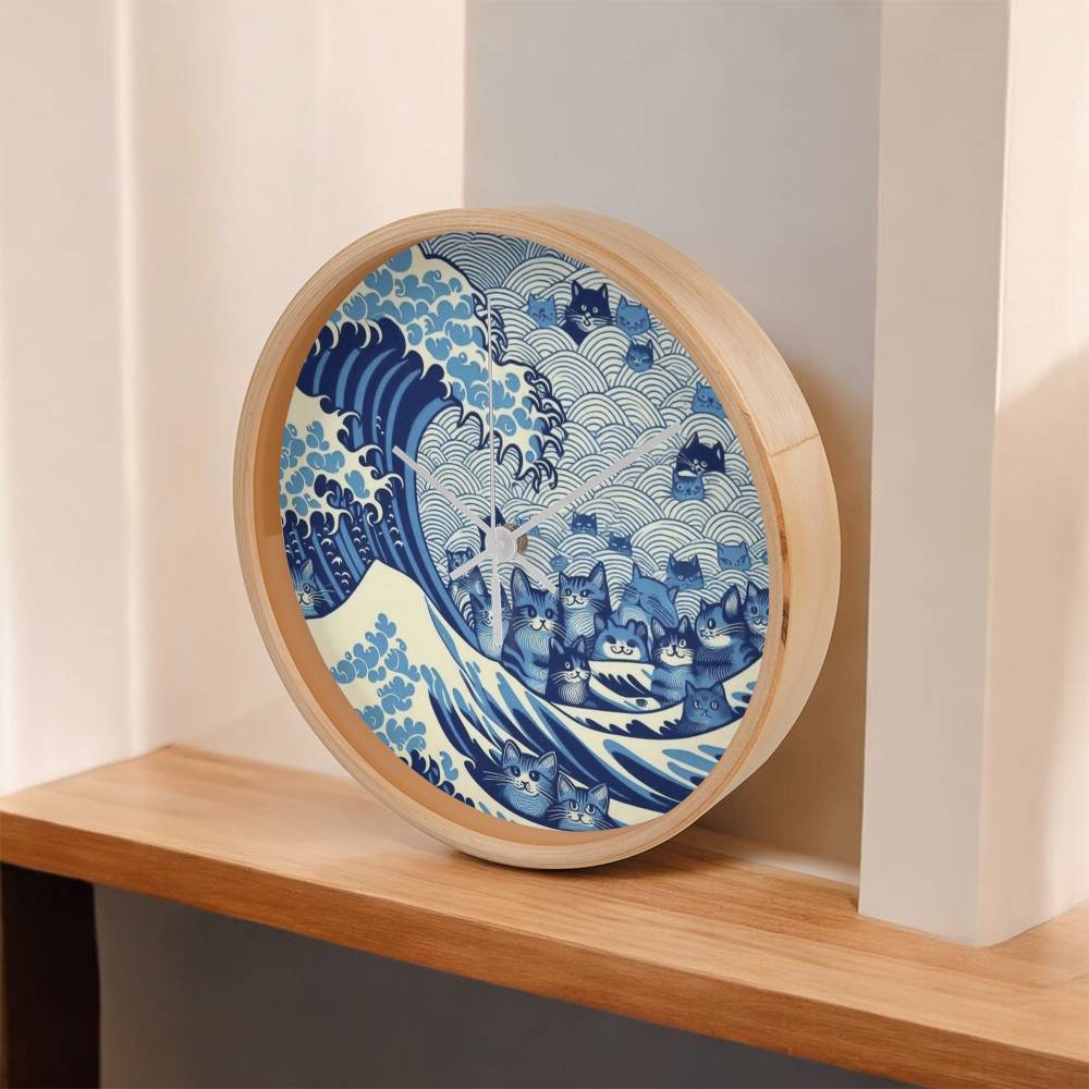 Harris Walz 2024 Election Cat Blue Wave Wood Frame 10” Clock