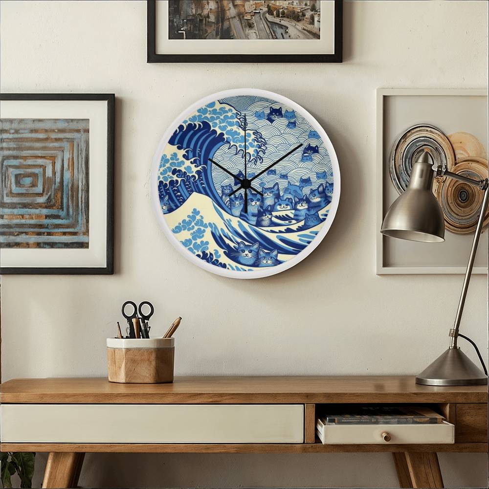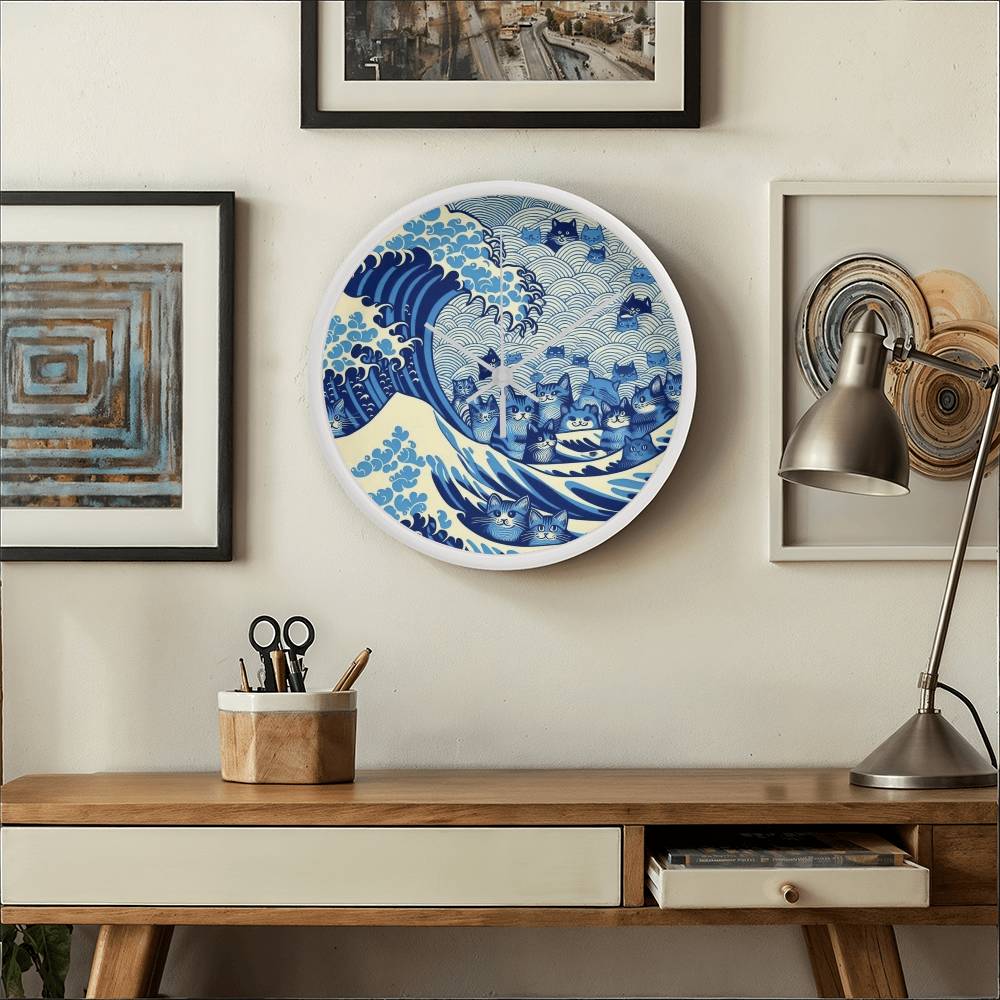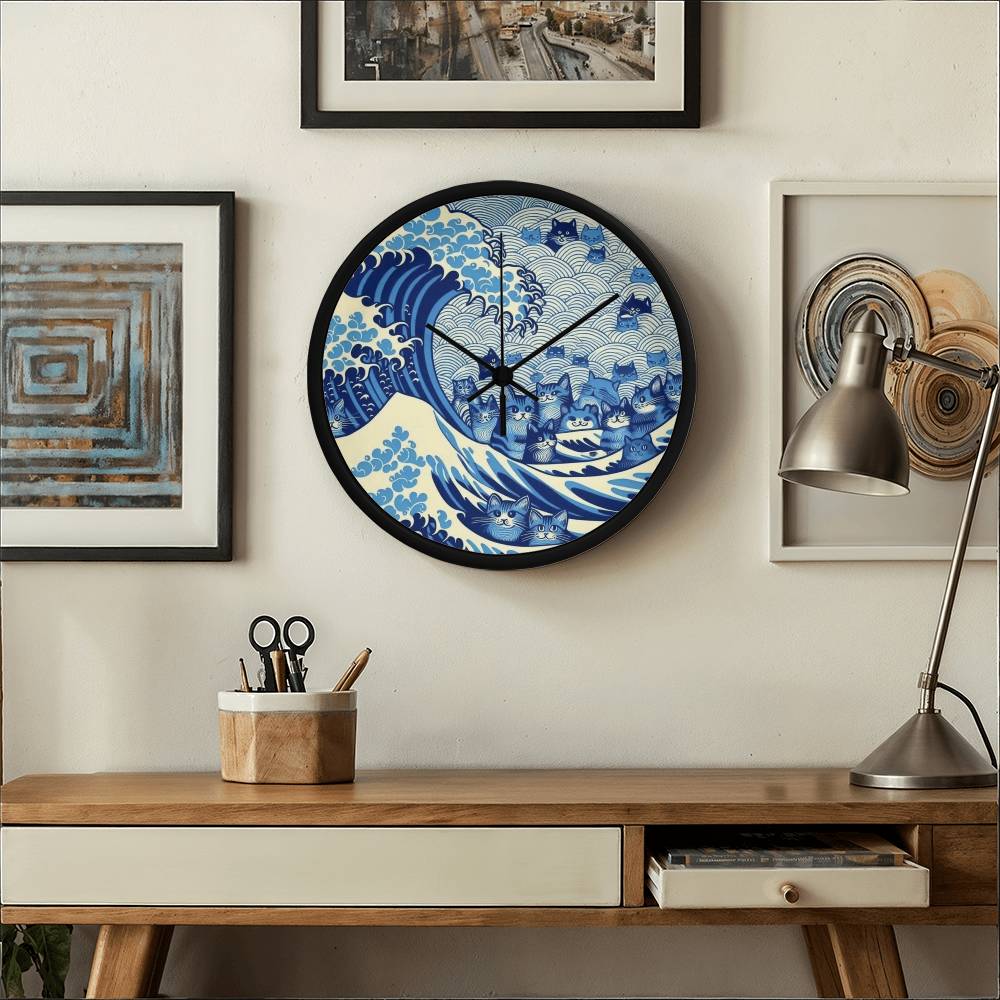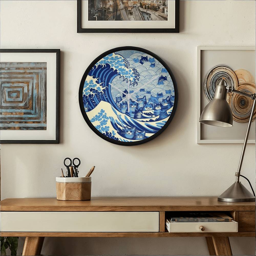 Harris Walz 2024 Election Cat Blue Wave Wood Frame 10” Clock