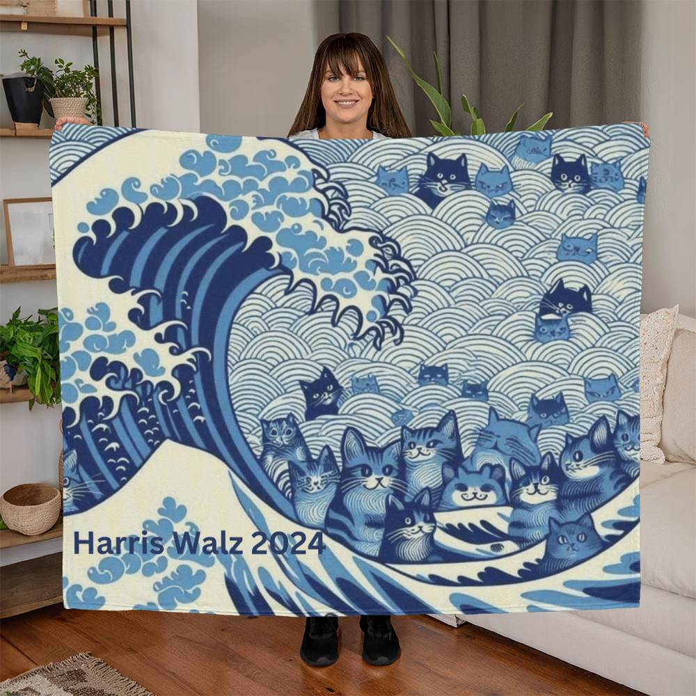 Harris Walz 2024 Election Cat Blue Wave Jersey Fleece Blanket