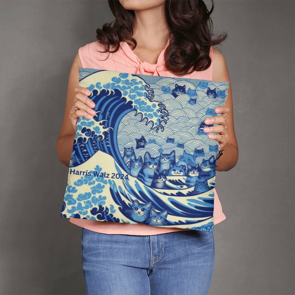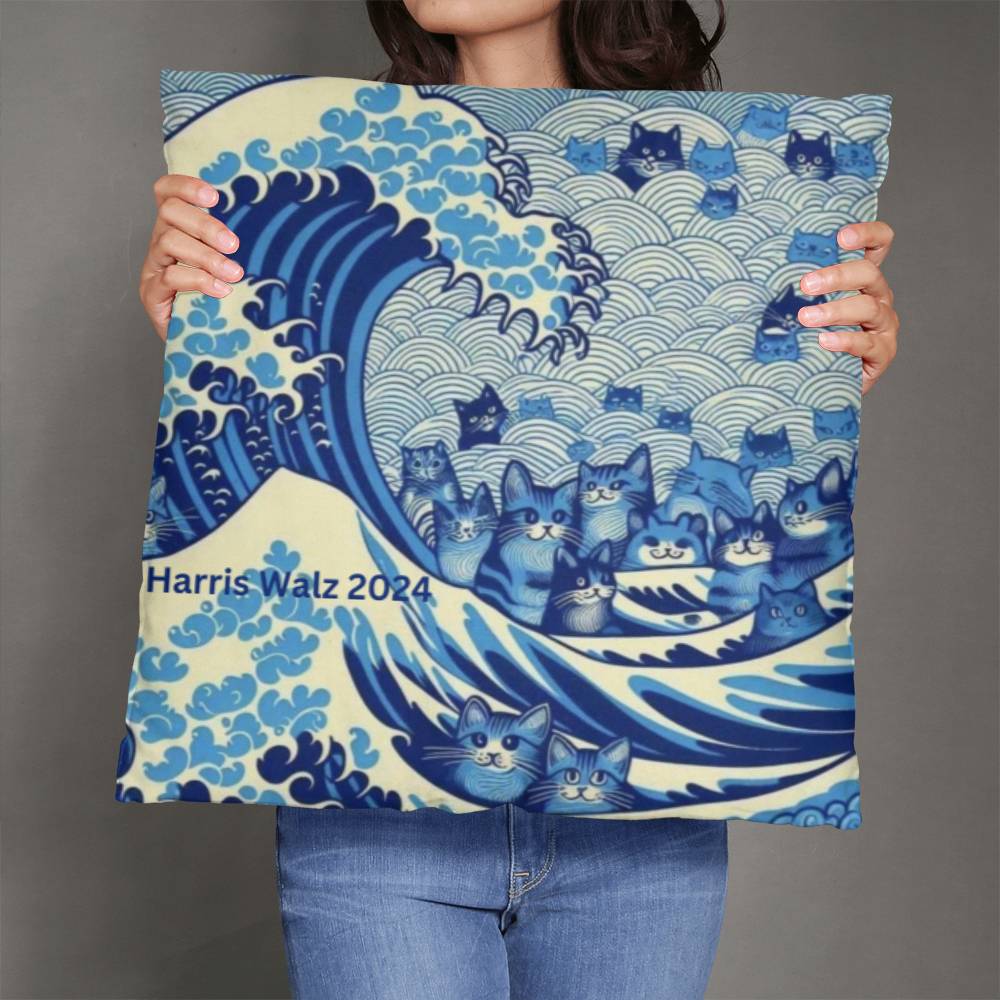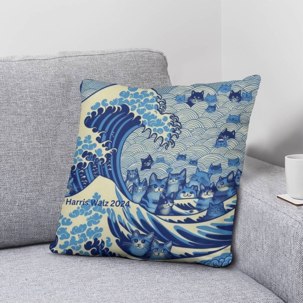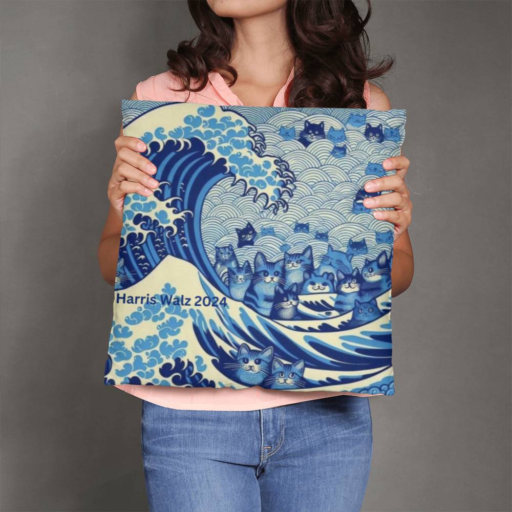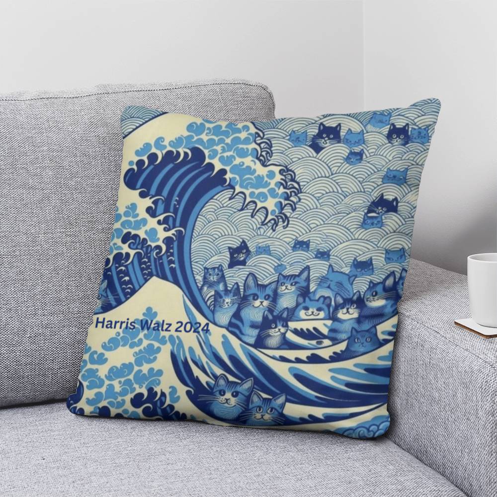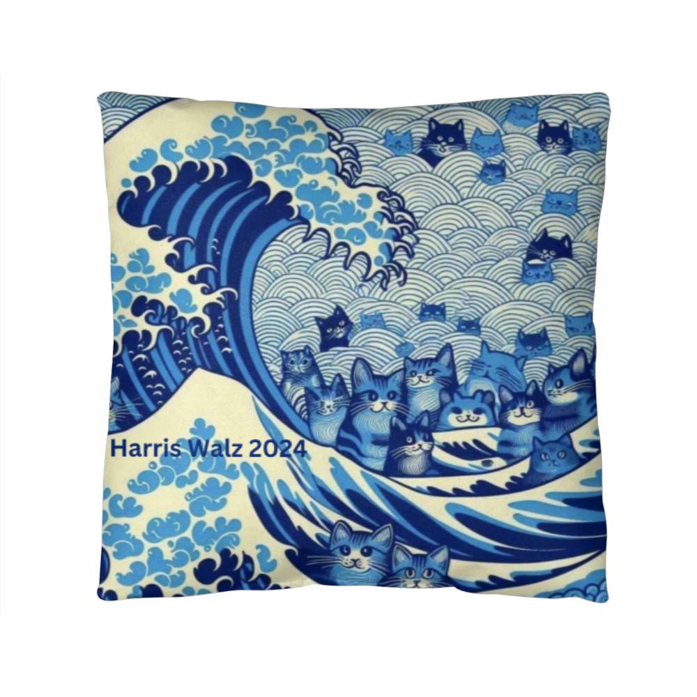 Harris Walz 2024 Election Cat Blue Wave Classic Pillow