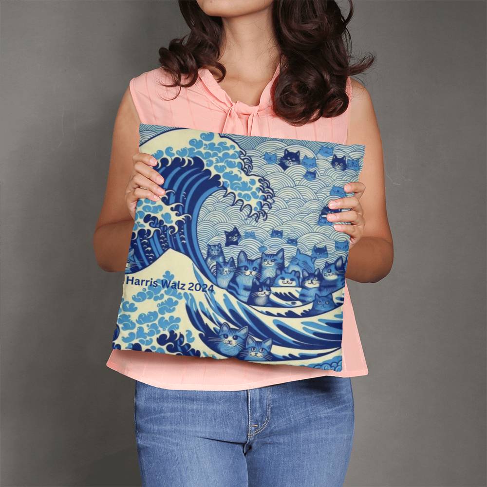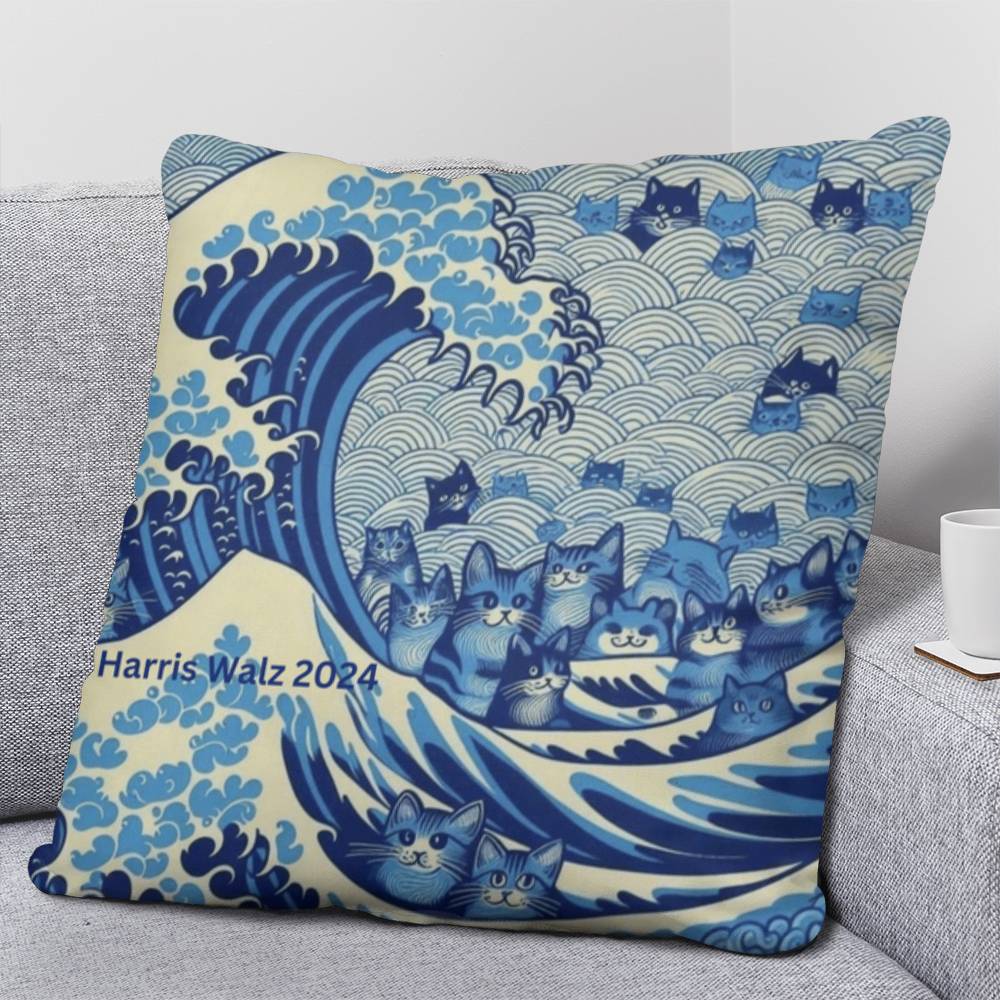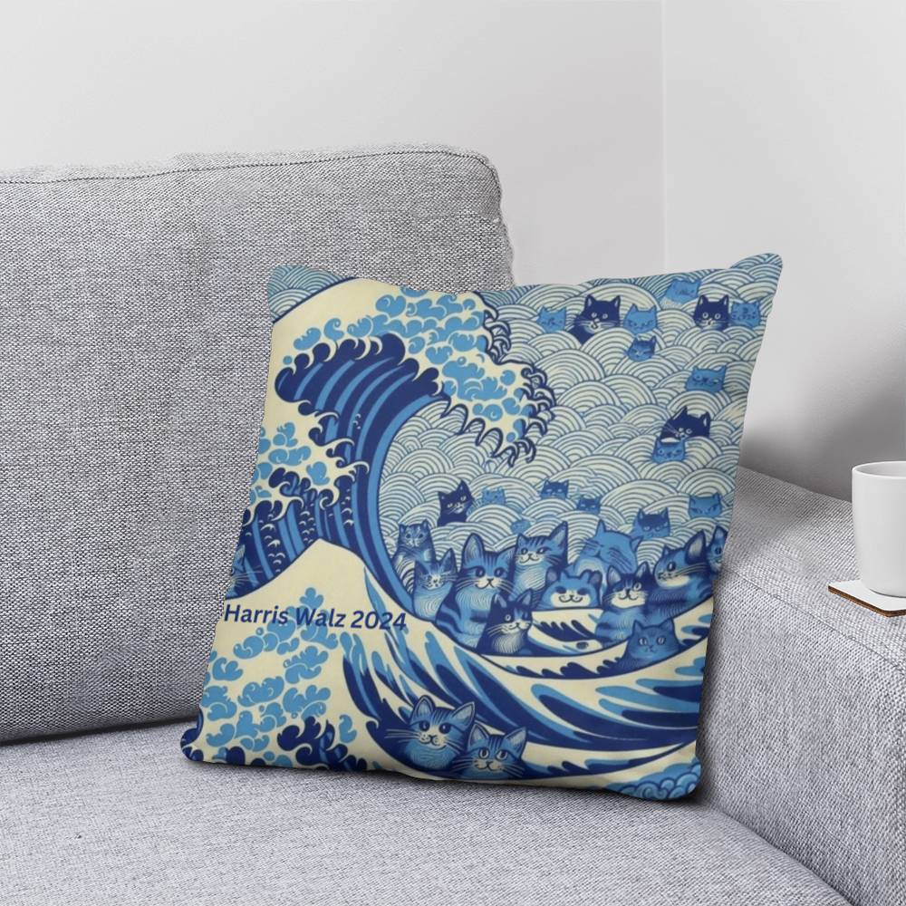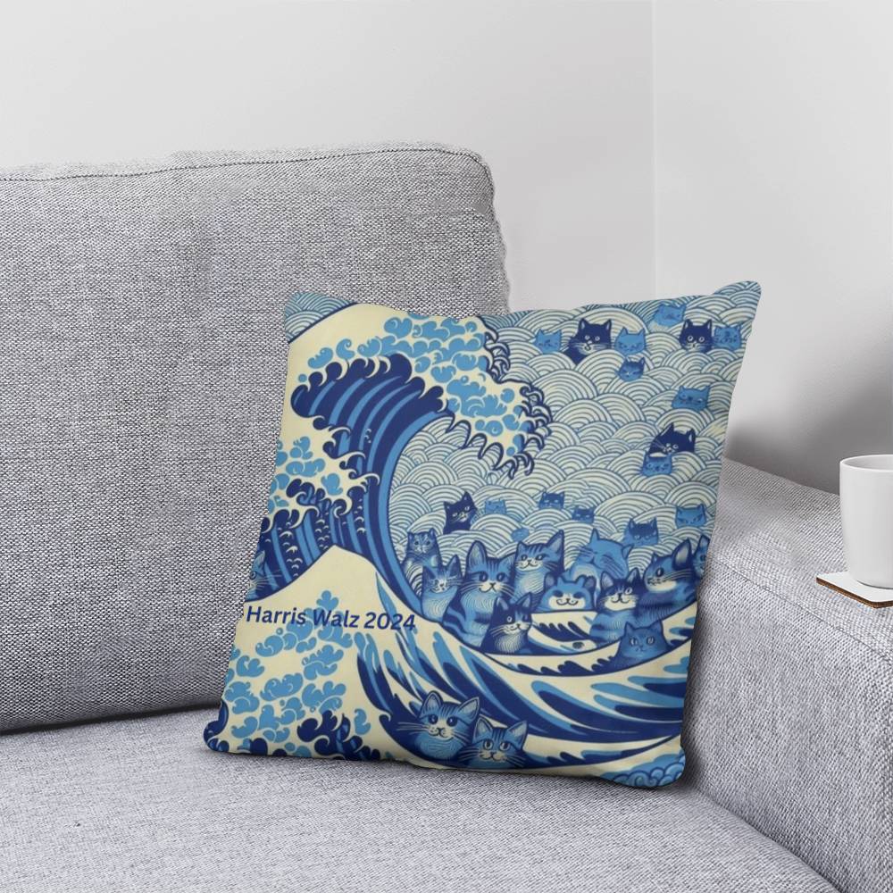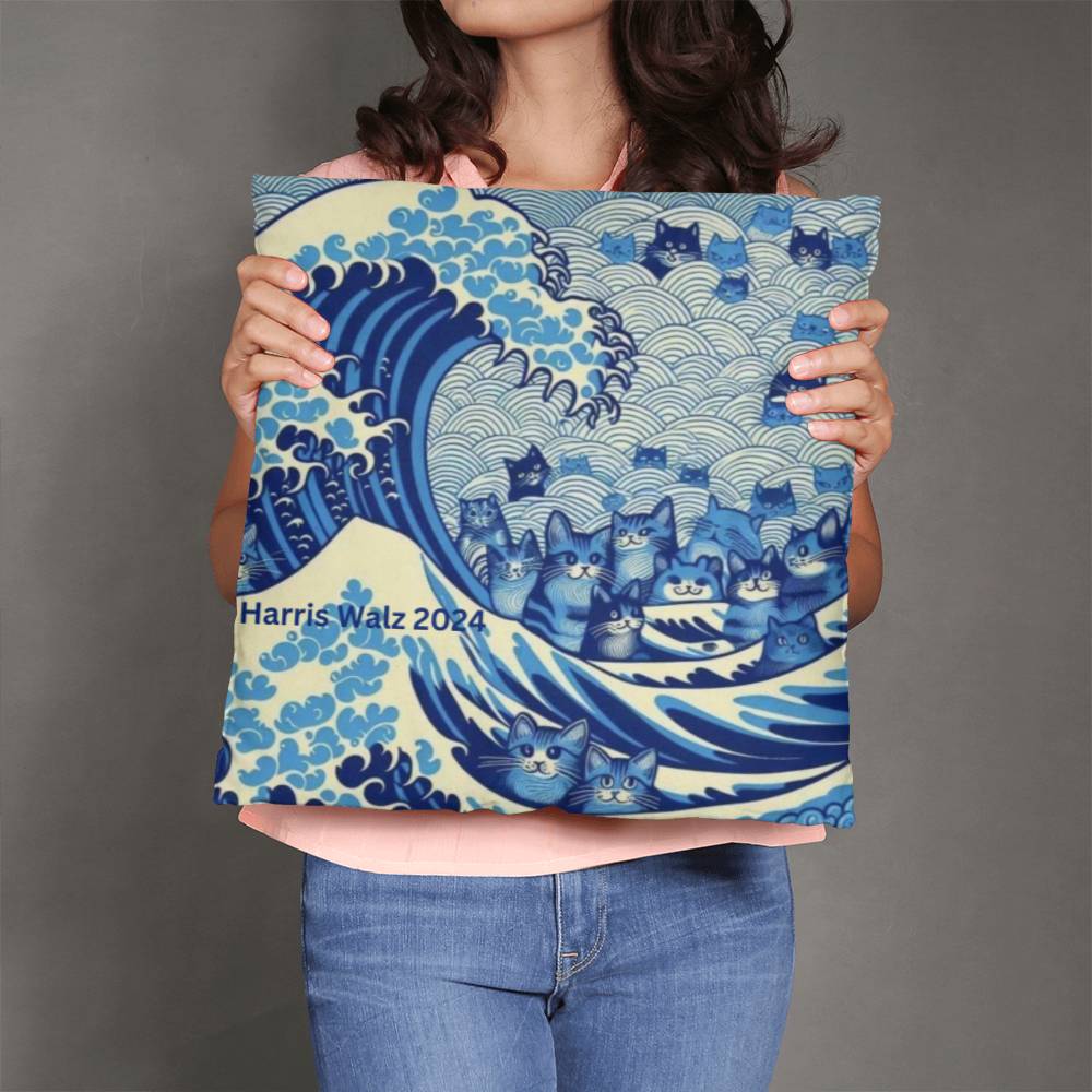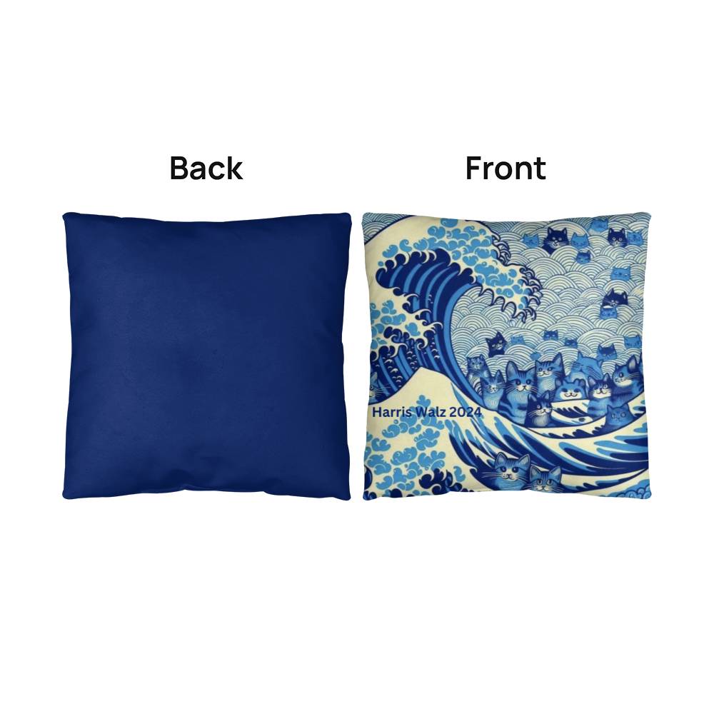 Harris Walz 2024 Election Cat Blue Wave Classic Pillow