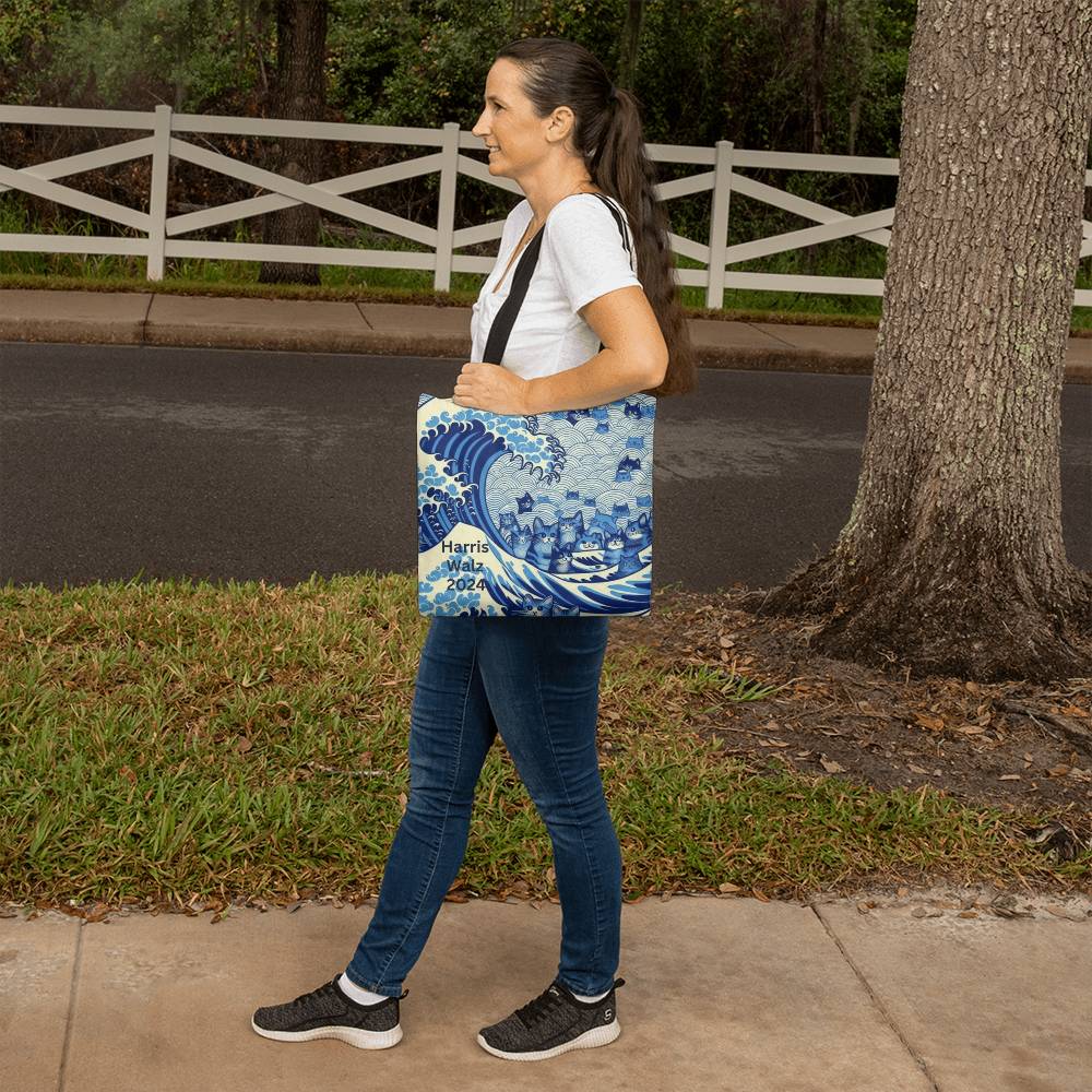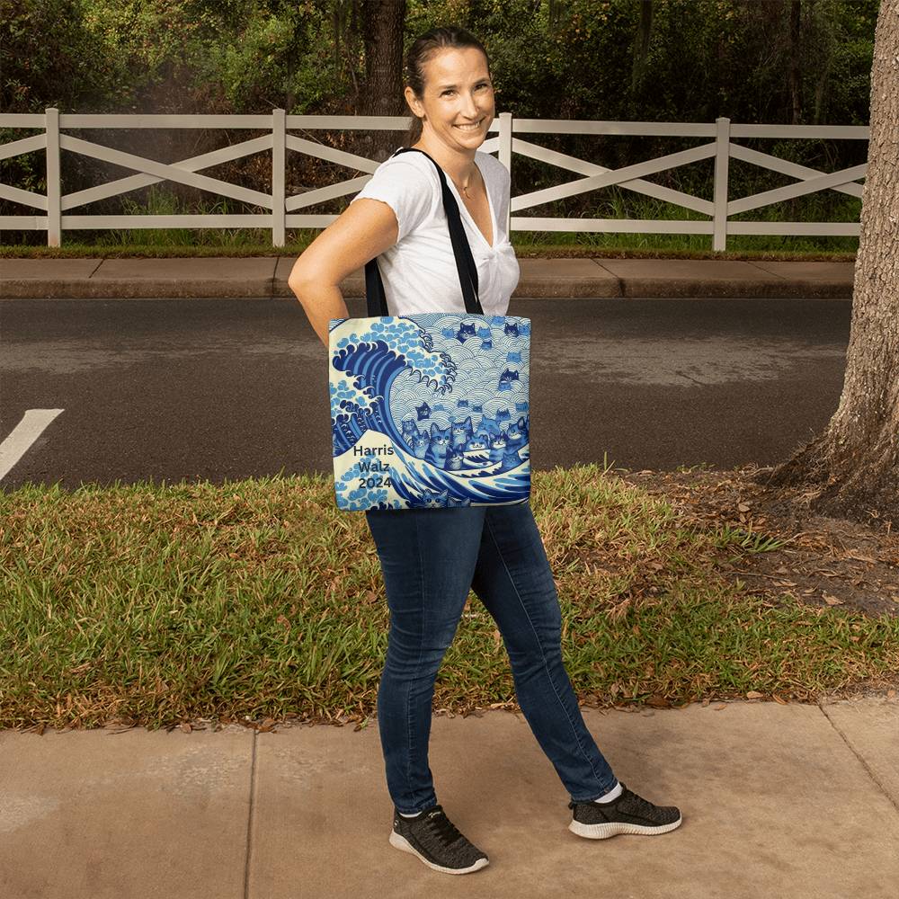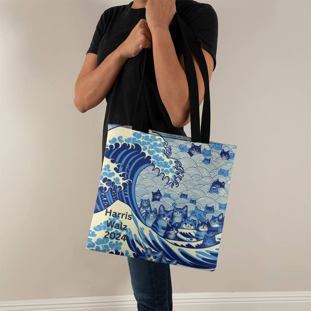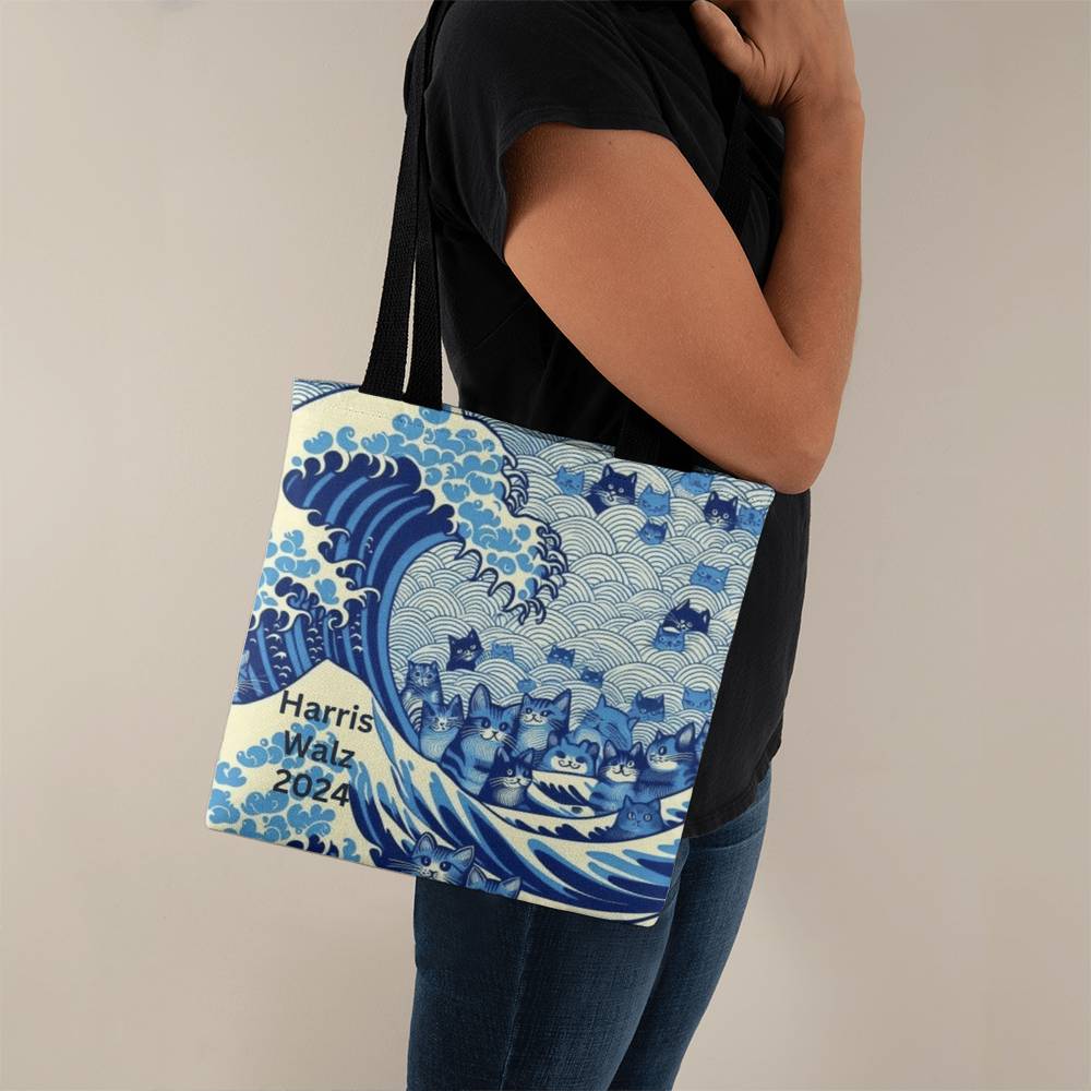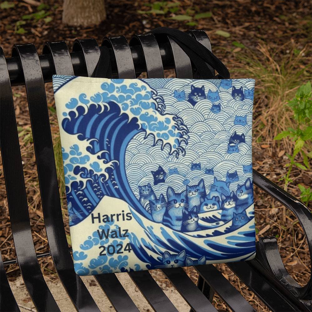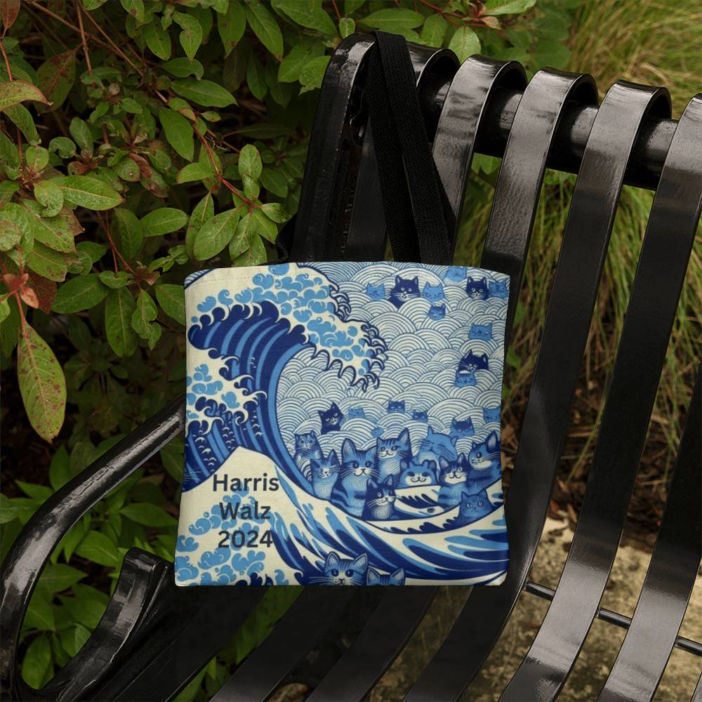 Harris Walz 2024 Election Cat Blue Wave Classic Tote Bag