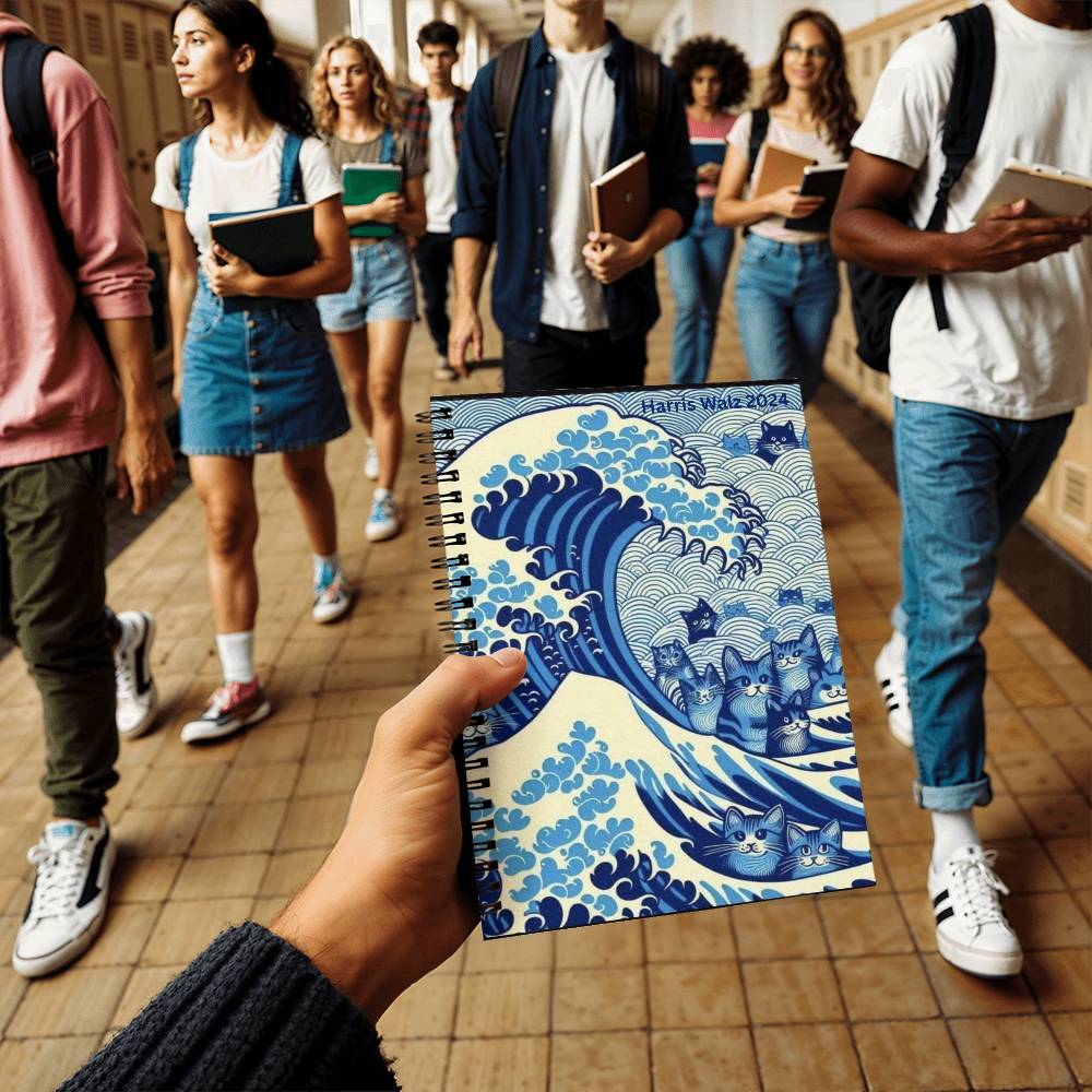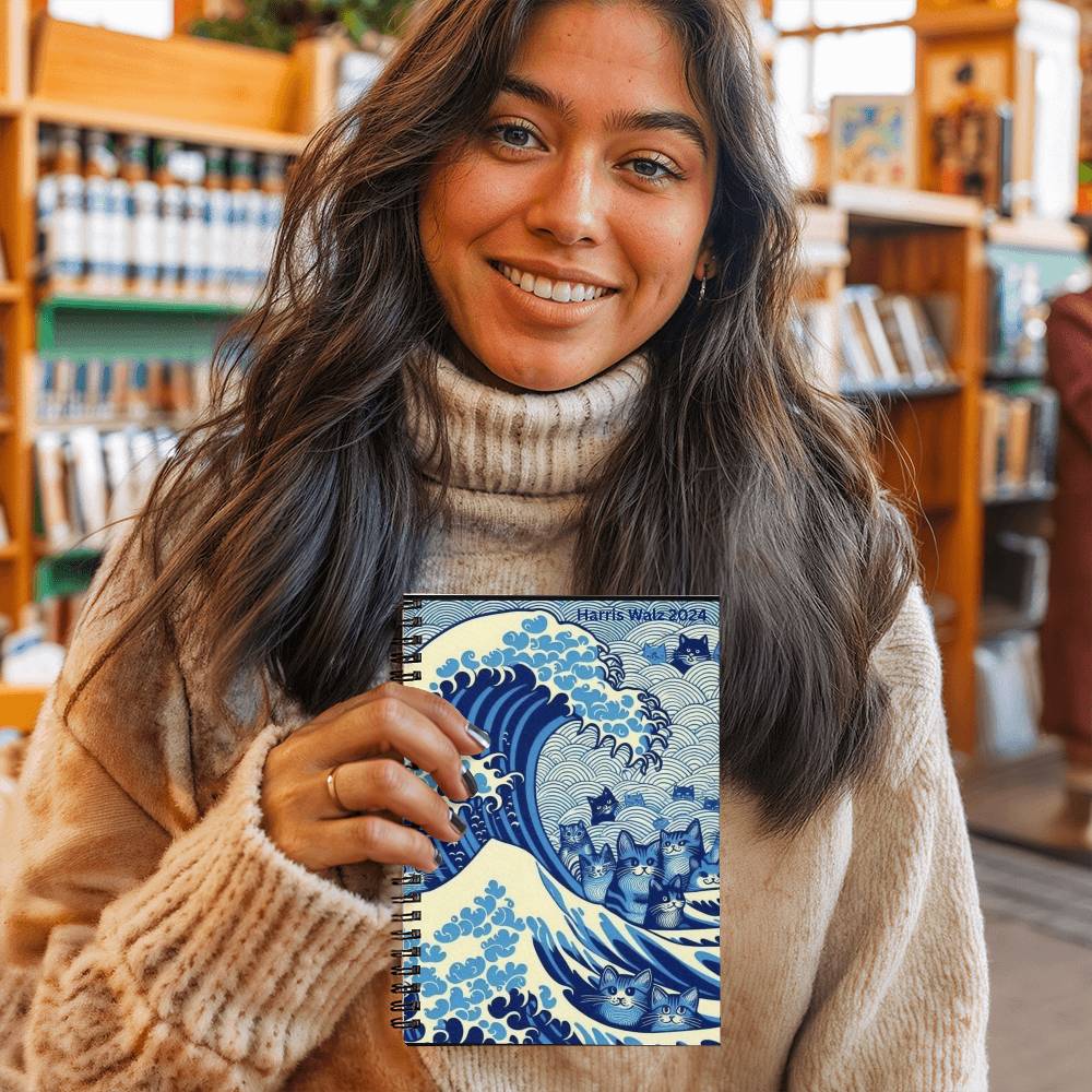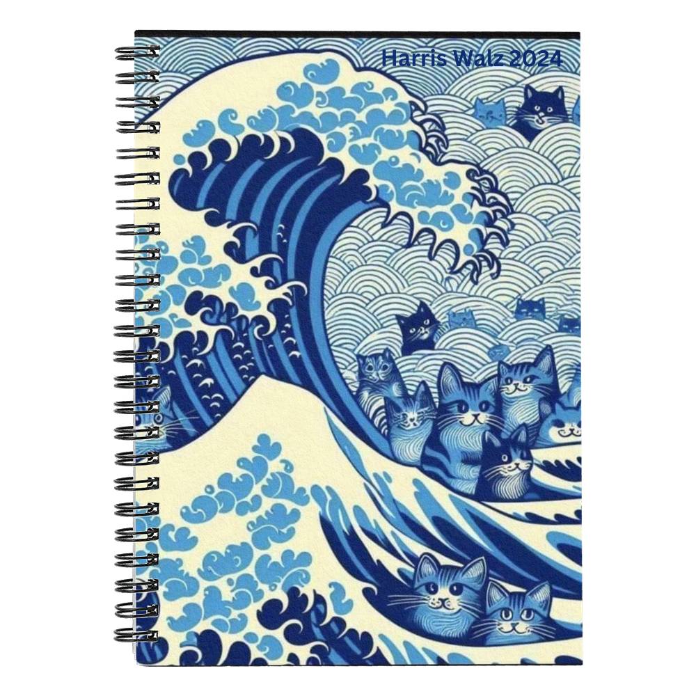 Harris Walz 2024 Election Cat Blue Wave Spiral Notebook