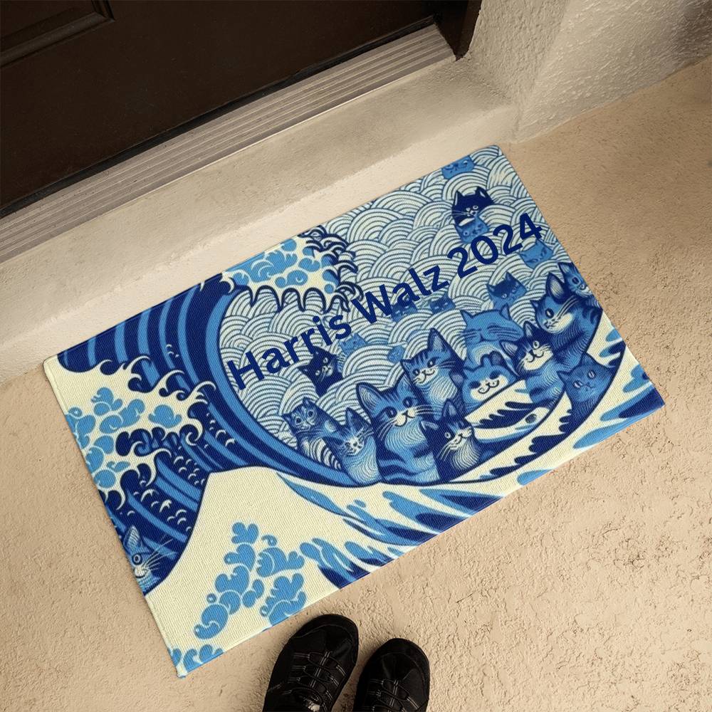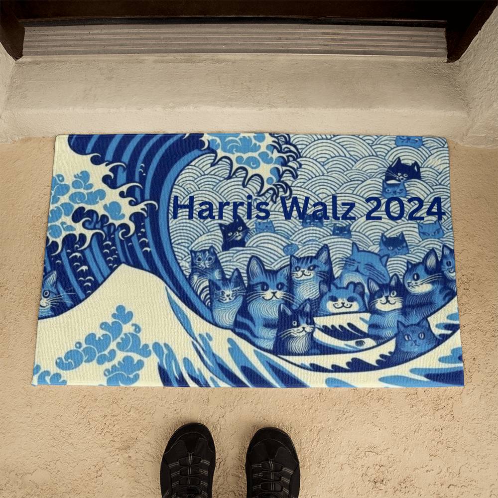 Harris Walz 2024 Election Cat Blue Wave Welcome Mat