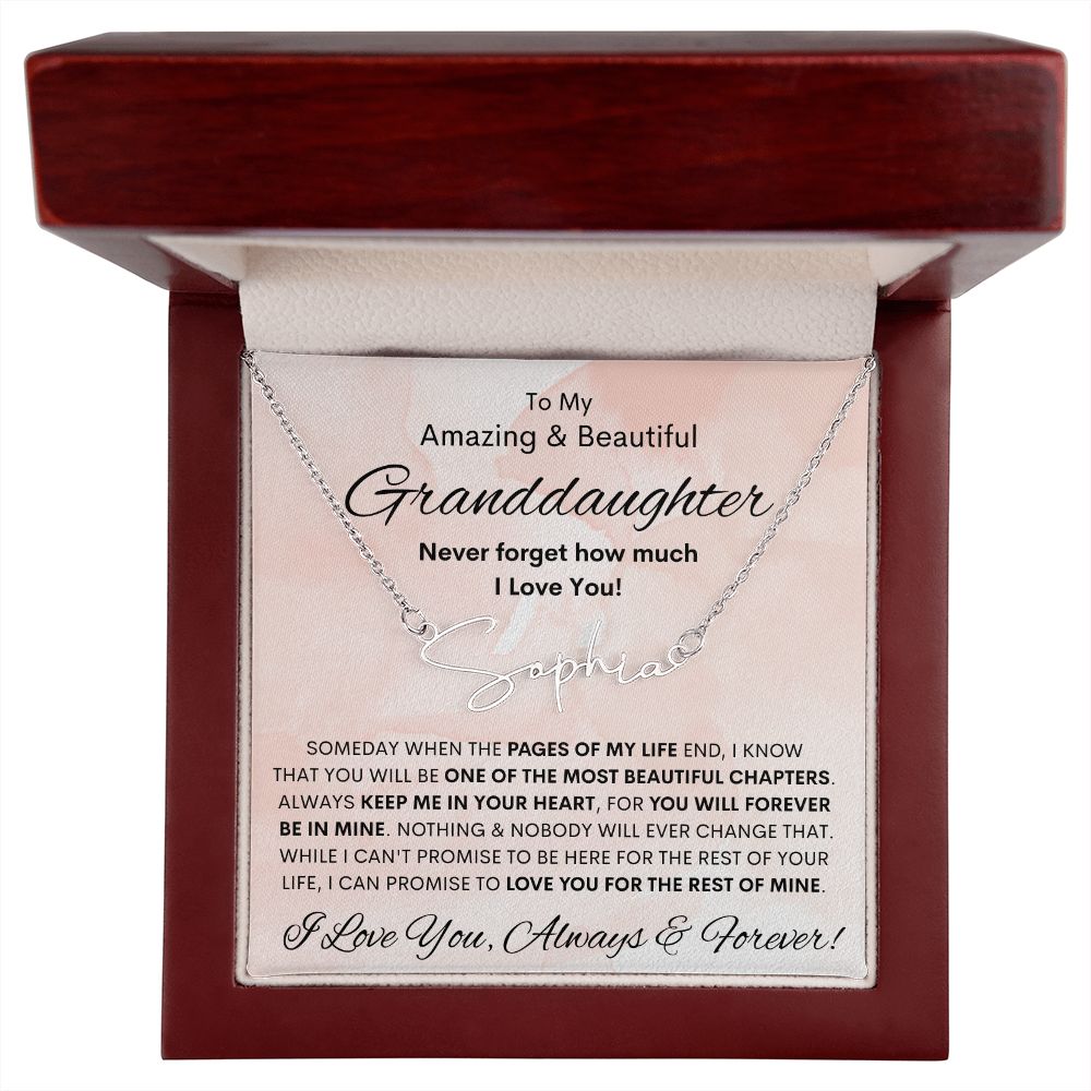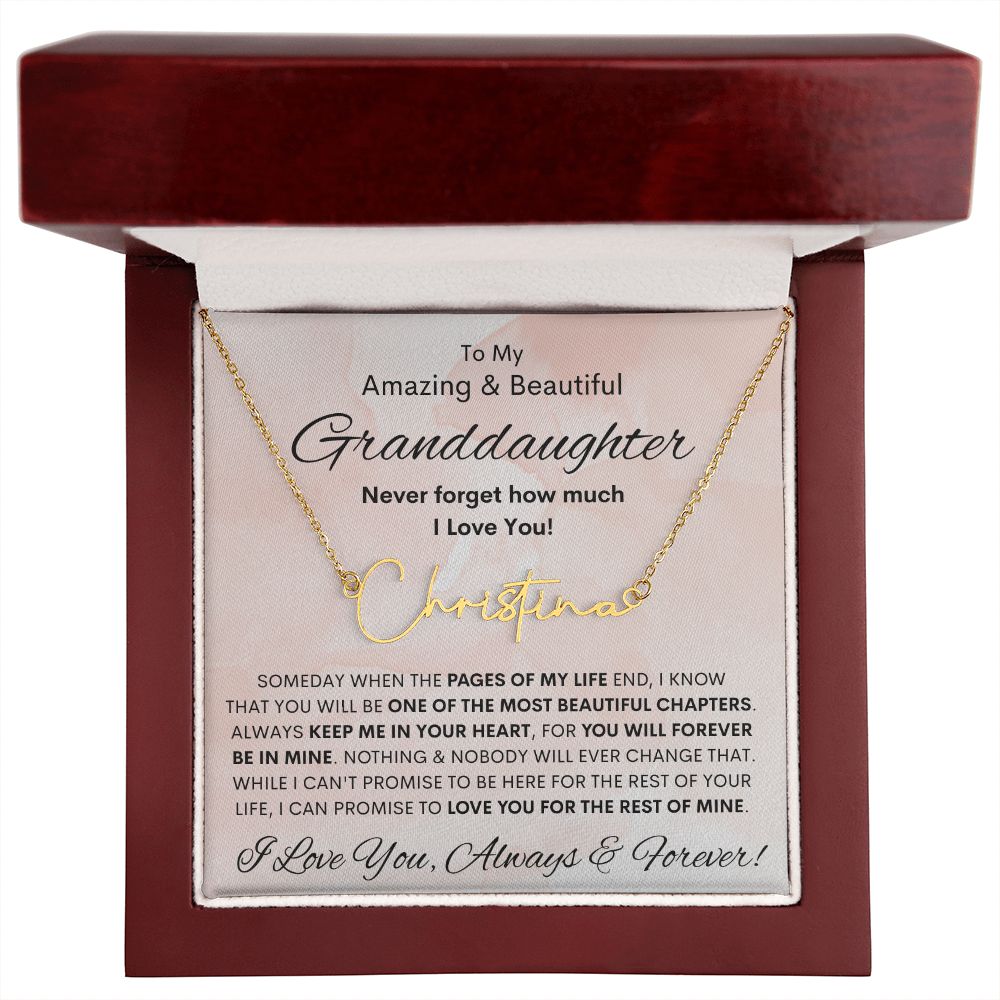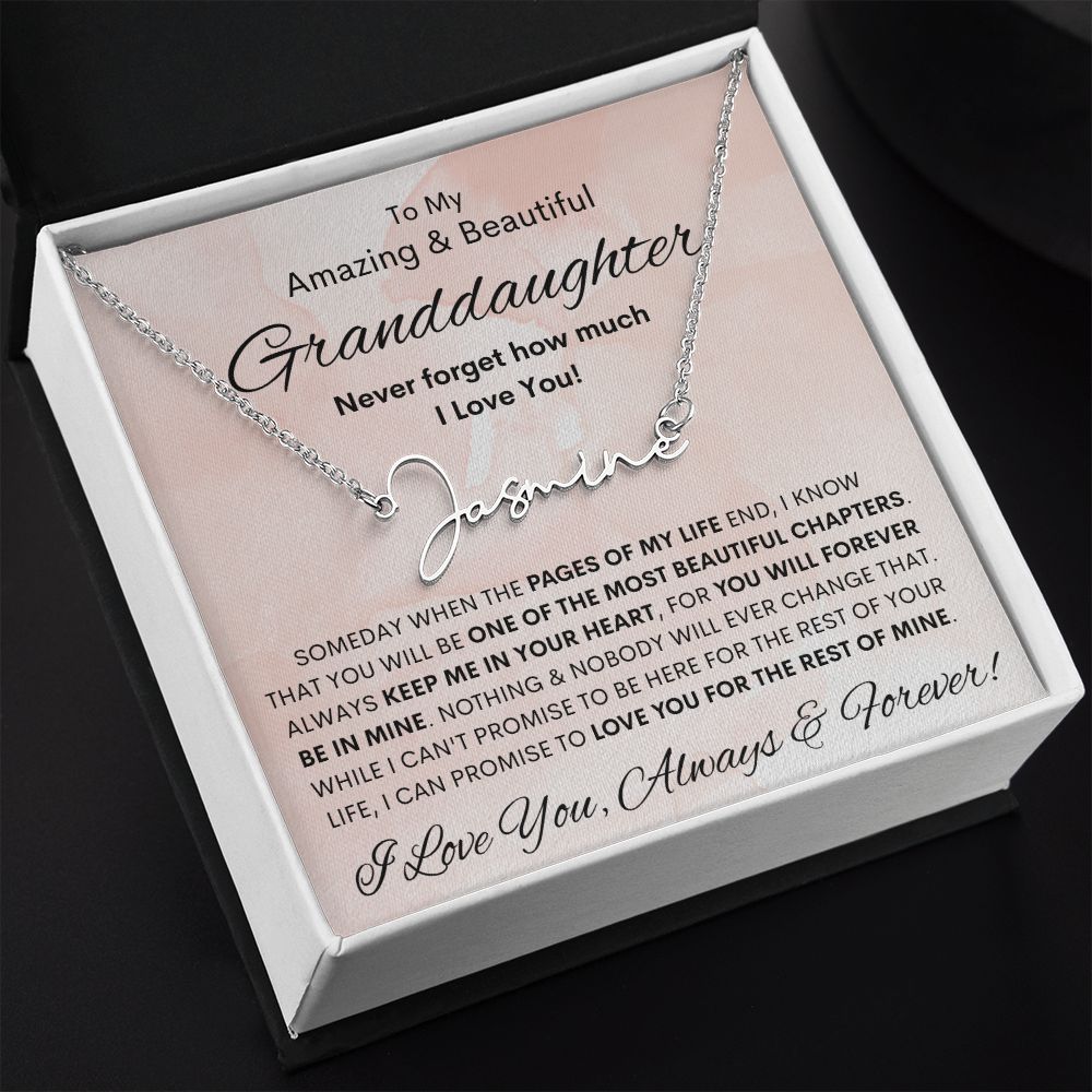 Granddaughter, Signature Style Name Necklace, Birthday, Swt16, Bat Mitzvah, Graduation, Easter, Communion, Confirmation, Holiday