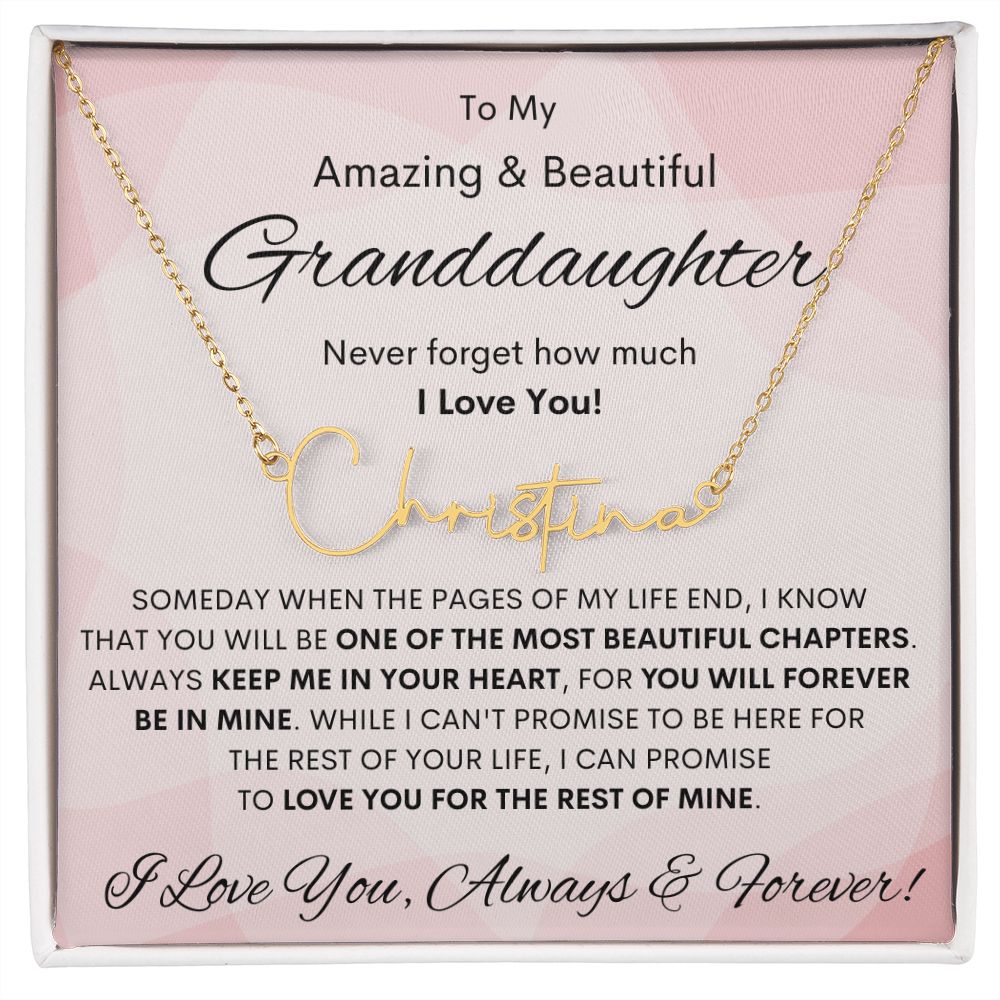 Granddaughter, Signature Name Necklace, Birthday, Swt16, Bat Mitzvah, Graduation, Easter, Communion, Confirmation, Holiday