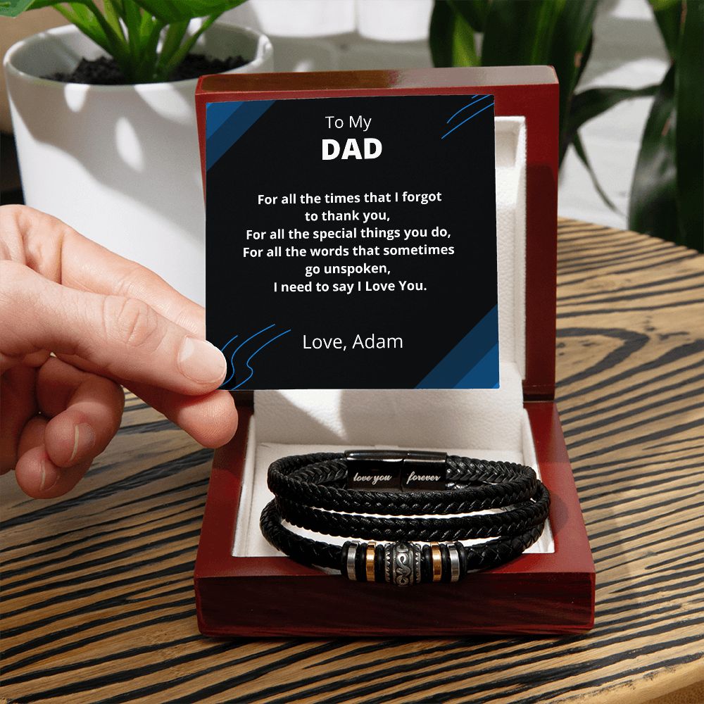 Are you looking for a gift as special as the man in your life? Then this Men's "Love You Forever" Bracelet is perfect! Engraved with a heartfelt message, this gift is great for birthdays, anniversaries, or just a thoughtful way to say "I love you". It's not just an accessory; it's a daily reminder of your love and appreciation. Whether it's your son, husband, or any deserving guy, this bracelet will have them grinning from ear to ear while rocking some serious style.